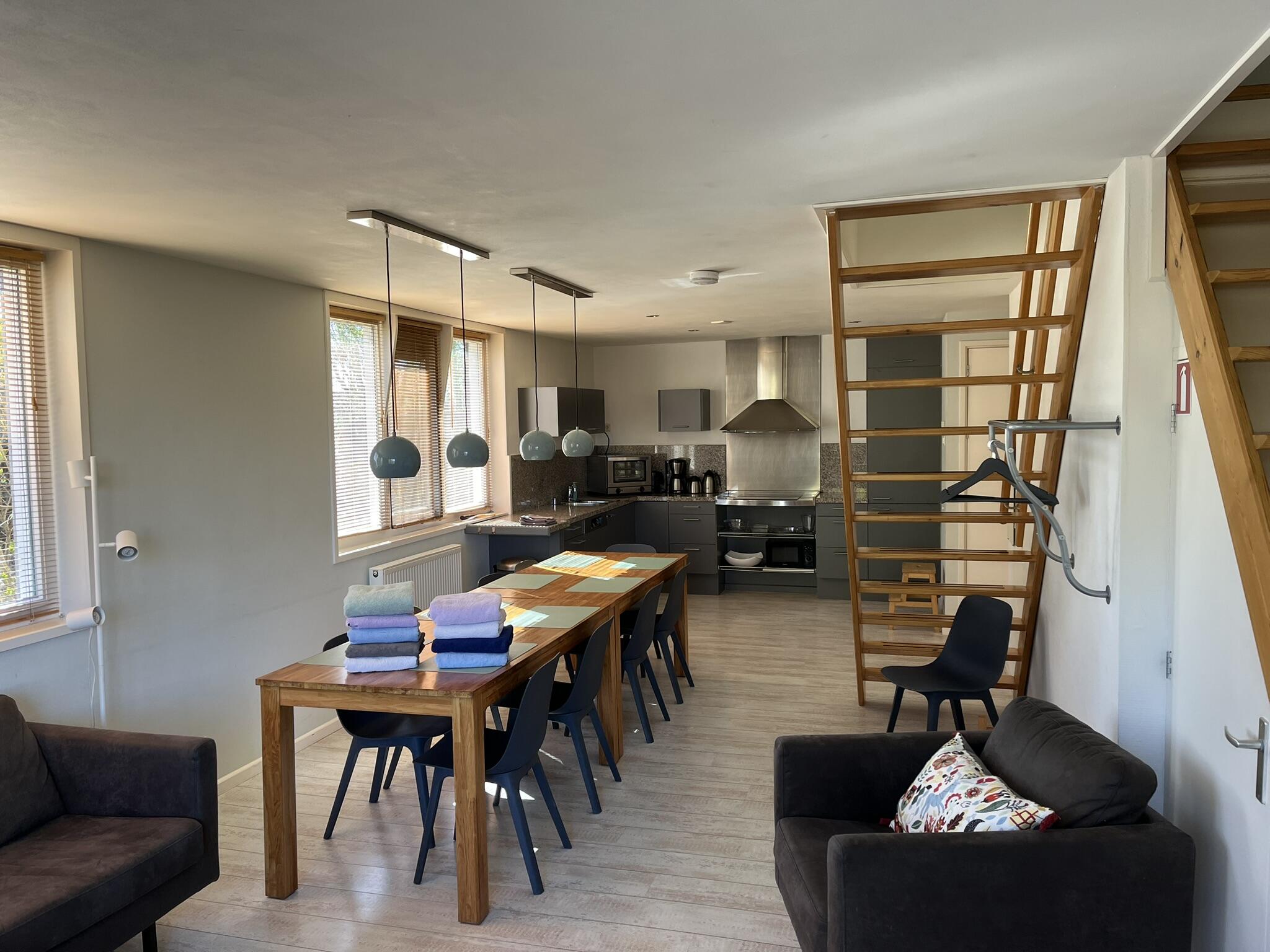 Das Ferienhaus Zoutkamp ist ein großes und gemütliches Ferienhaus, ideal für eine Gruppe von Familien oder Freunden. Das geräumige, helle, nach Süden ausgerichtete Wohnzimmer verfügt über eine offene Siematic-Küche mit Cerankochfeld, Mikrowelle, Geschirrspüler und Kühl-/Gefrierschrank und ist komplett ausgestattet, um gemeinsam zu kochen. Es gibt einen geräumigen Essbereich, an dessen langem Tisch sich alle zum Frühstück, Abendessen oder Spielen treffen können. Die Sitzecke ist mit einem Flachbildfernseher ausgestattet. Vom Wohnzimmer aus gelangen Sie auf die nach Südosten ausgerichtete Terrasse, die ebenfalls viele Möbel zum Sitzen und Essen im Freien bietet. Im Erdgeschoss befindet sich ein Badezimmer mit Dusche, WC und Waschbecken sowie eine separate zweite Dusche und Toilette. Alle Schlafzimmer haben Waschbecken mit Warm- und Kaltwasser.